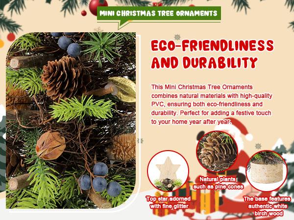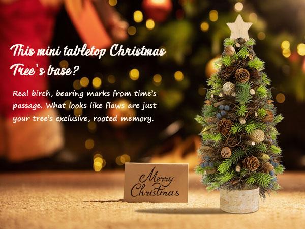 Mini Christmas Tree with Base Artificial Pine Tabletop Tree for Office Reception Window Display & Party Decor with Pinecones and Ornaments